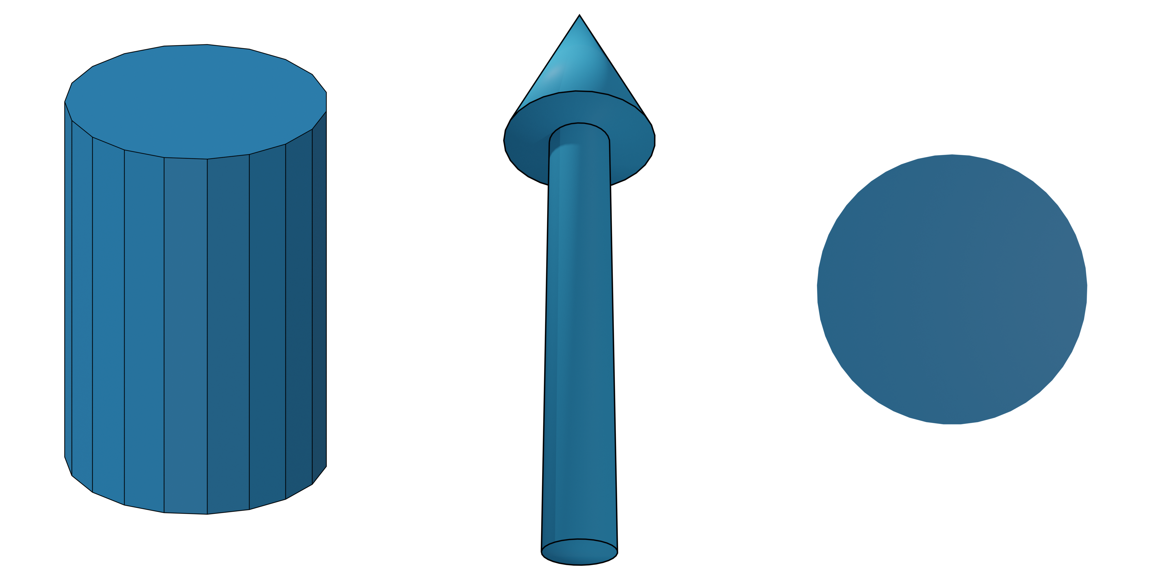 >>> cone = ddg.indexedfaceset.cylinder(resolution=20, top_radius=0, bot_radius=1)
