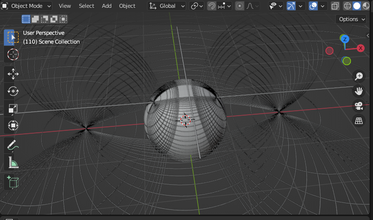 It is very useful, to pass collections here, so we can hide and show the different groups of objects as we wish. For example, hiding the collections with the points gives us: